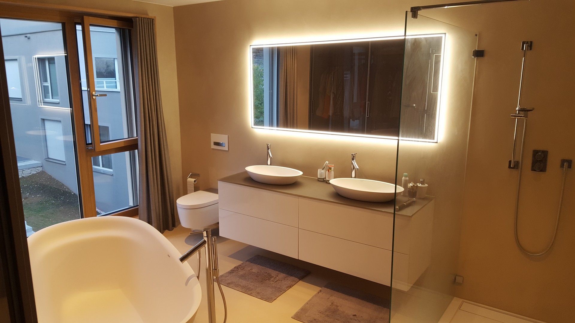 Wir planen die Sanitäranlage nach Ihren Vorgaben, liefern alle notwendigen Bestandteile und installieren die Anlage fachgerecht, schnell und zuverlässig bei Ihnen im Haus.
